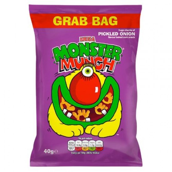 Monster Munch Pickled Onion crisps are flavour baked corn snacks and the pickled onion flavour are the most popular in the Monster Munch range.